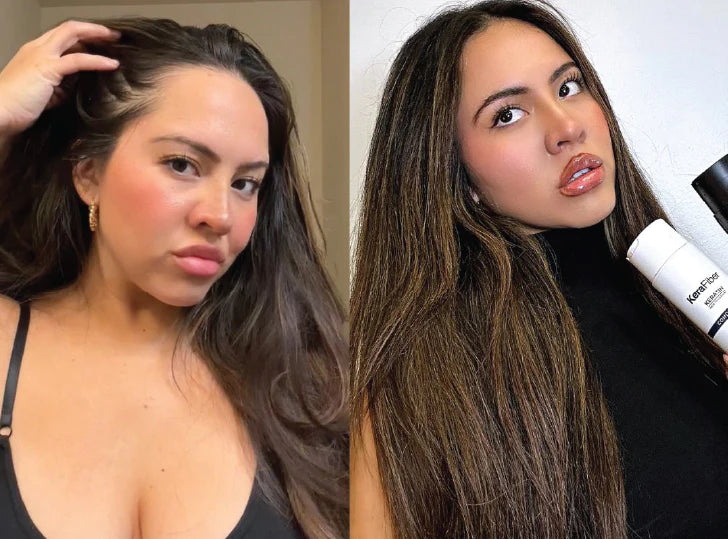 I've been dealing with some hair thinning and hair loss around my hairline. My friend recommended KeraFiber to me, and I cannot gatekeep them anymore! These products have helped my hair grow back thicker and stronger, and it feels softer too. Plus, my scalp and hair don't feel over-dried after washing.